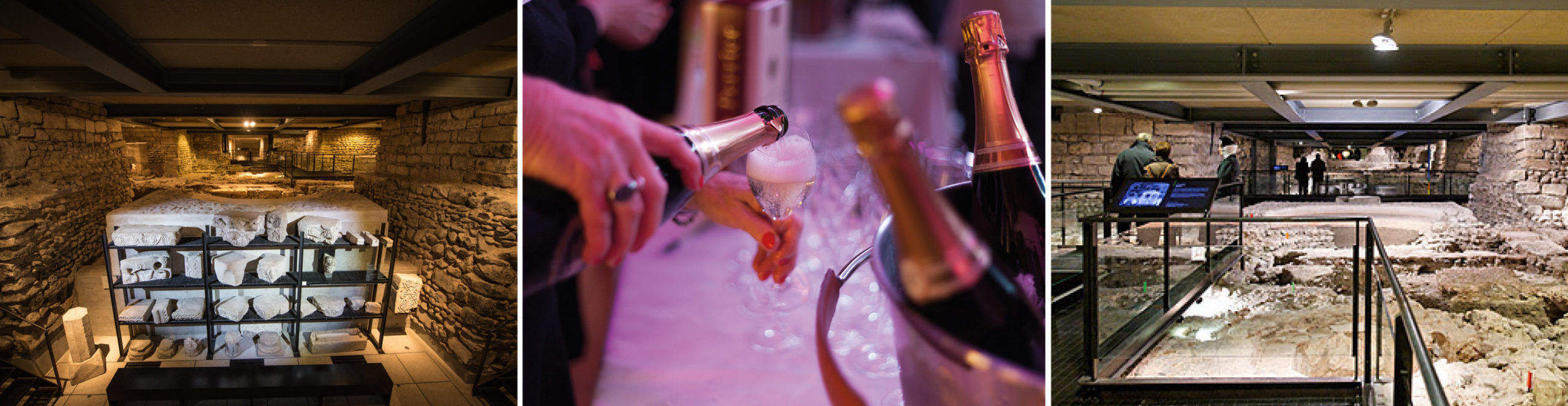 Bar éphémère (cash only), avec Champagne et softs, au sein du site archéologique de la Cathédrale St-Pierre.